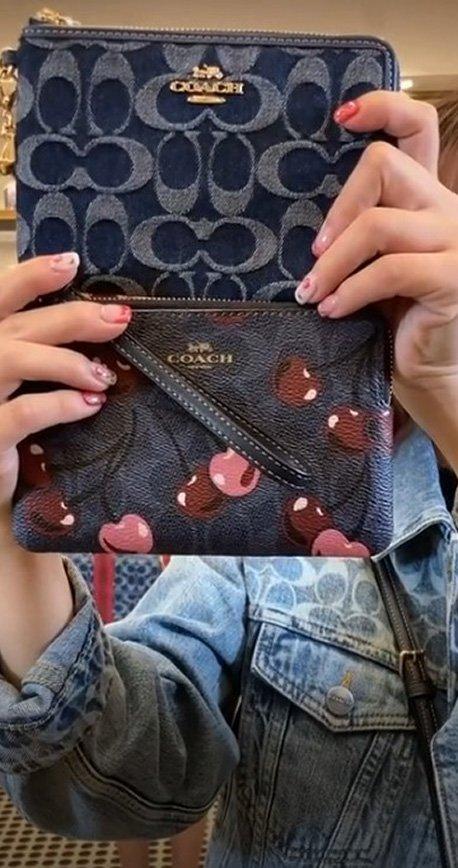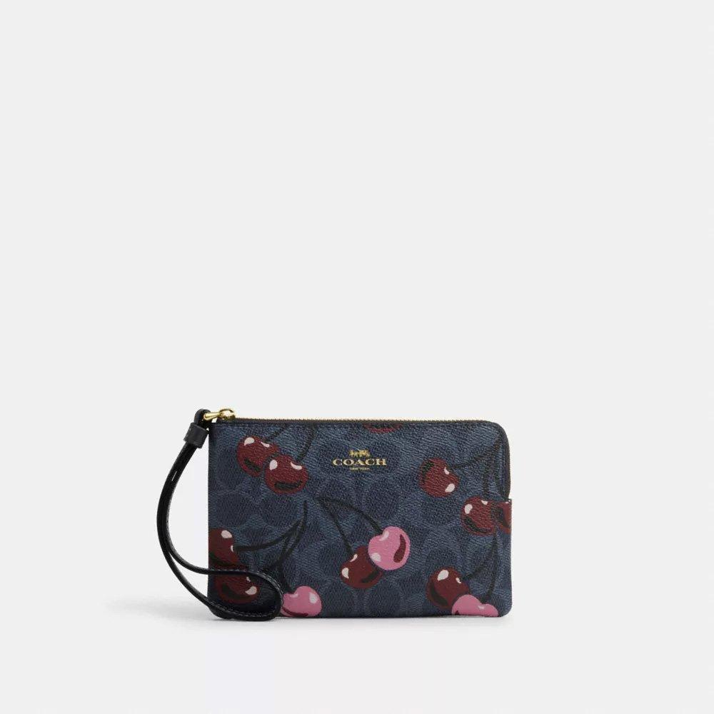 コーナー ジップ リストレット・シグネチャー キャンバス・チェリー プリント