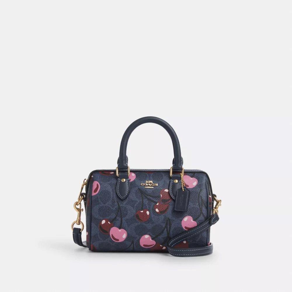 ミニ ローアン クロスボディ バッグ・シグネチャー キャンバス・チェリー プリント