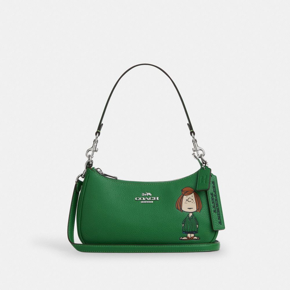 COACH®,【COACH X PEANUTS】テリ ショルダー バッグ・ペパーミント パティ,ショルダーバッグ,シルバー/ケリー グリーン マルチ