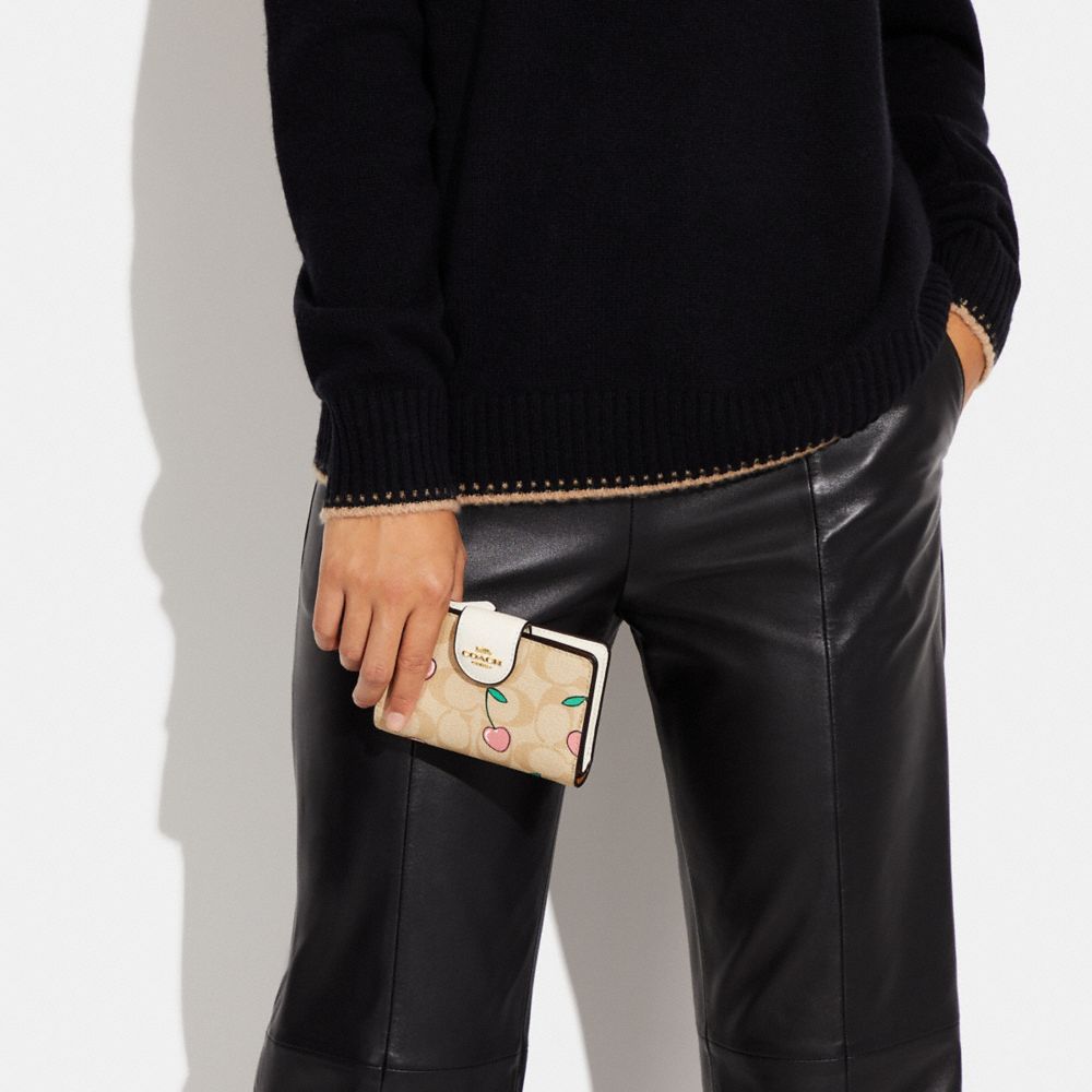 ミディアム コーナー ジップ ウォレット・シグネチャー キャンバス・ハート チェリー プリント