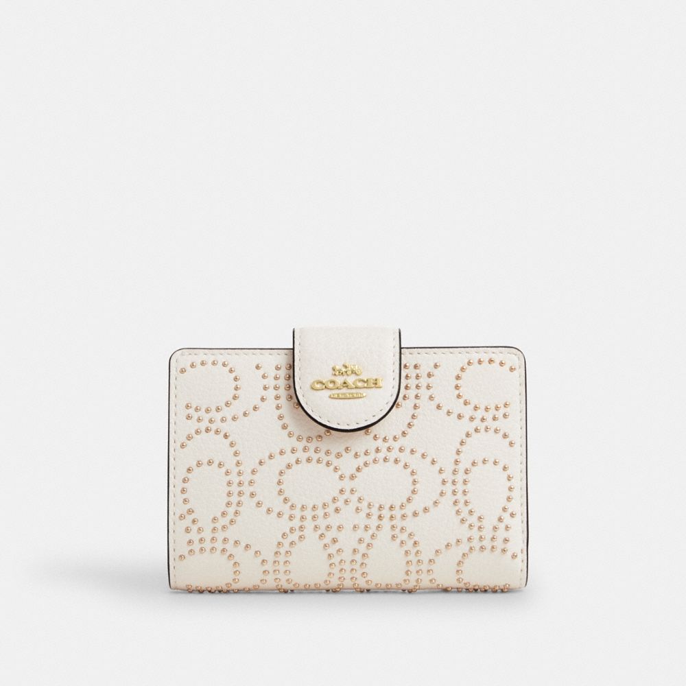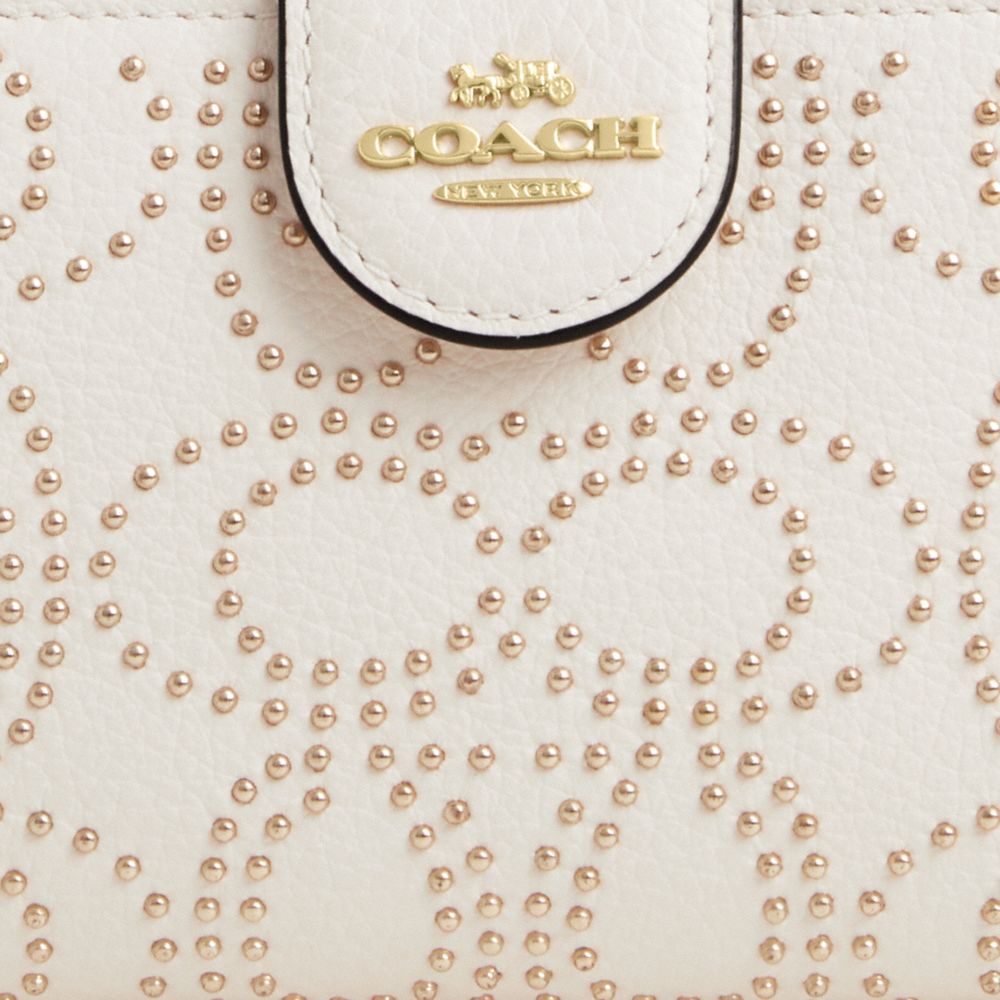 COACH®,ミディアム コーナー ジップ ウォレット・シグネチャー リベット,ミニ財布,チョーク