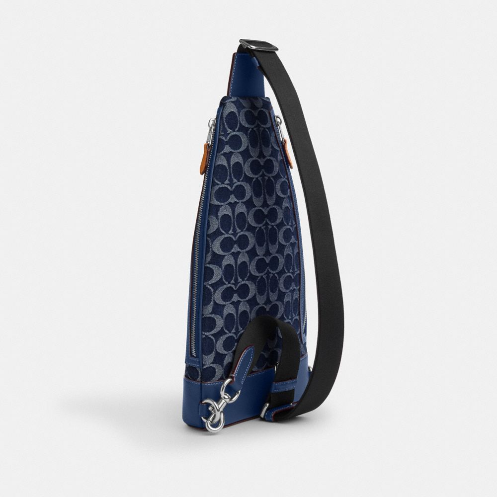 COACH®,ドミニク スリング パック・シグネチャー デニム,メッセンジャー&ボディバッグ,シルバー/デニム/ディープ ブルー