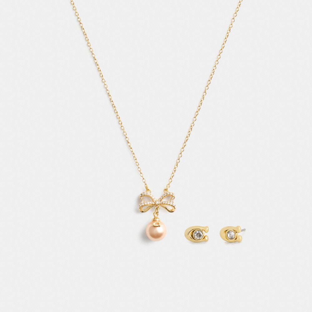 COACH®,ボウ パール ネックレス アンド ピアス セット,ネックレス,