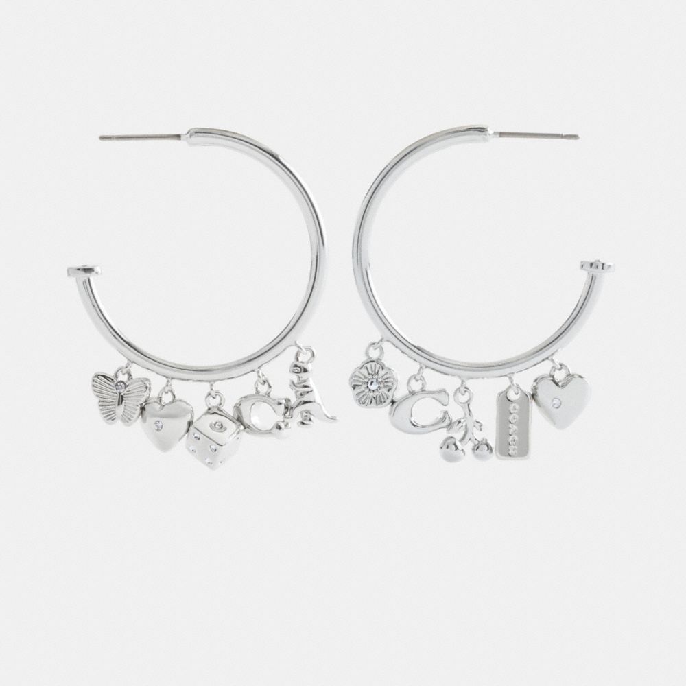 COACH®,バタフライ アンド レキシー チャーム フープ ピアス,ピアス,シルバー