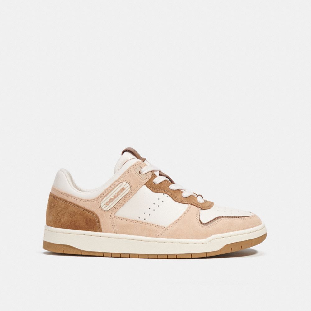 伝統的なコートシューズに着想を得たC201スニーカーは、ベルベット風のスエードとスムースレザーの異素材レザーで仕立てました。多用途に使えるロートップは、トラクションに優れた溝付きソールが特徴的です。