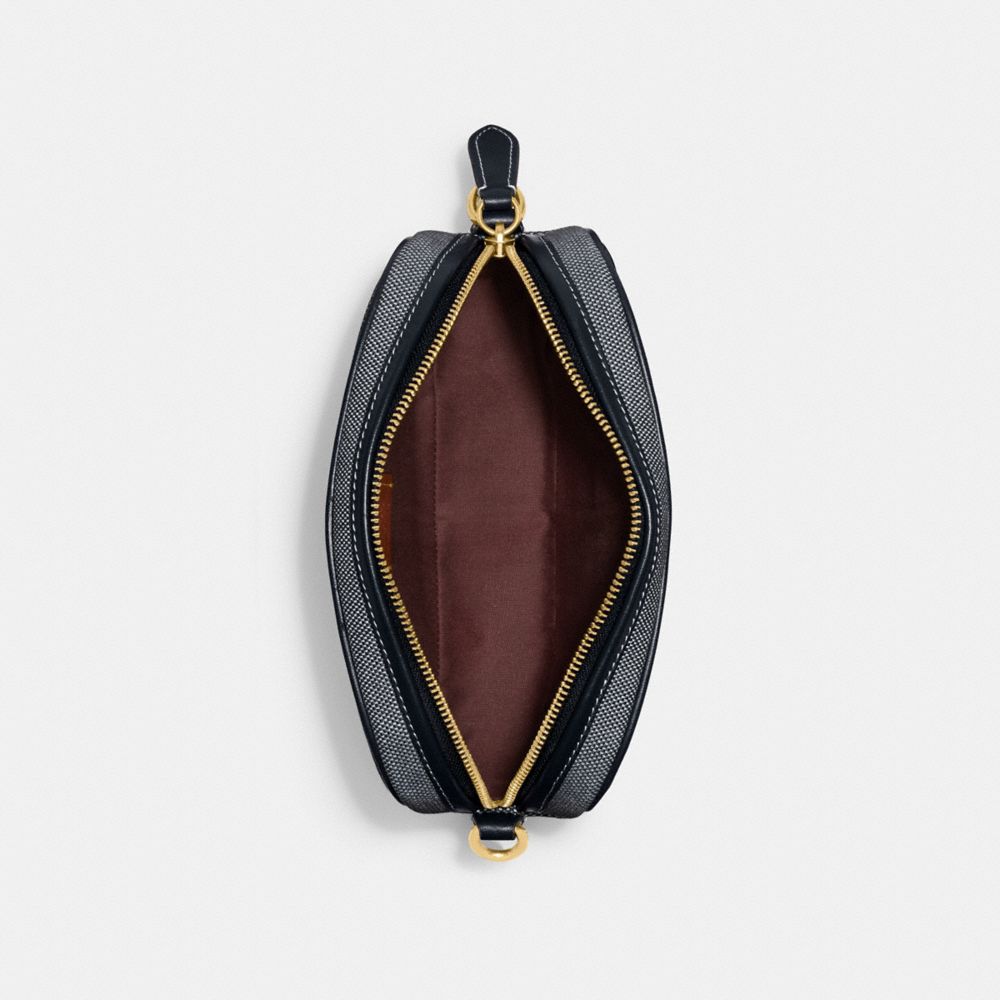 ヴィンテージ カメラ バッグに着想を得た、シーンを選ばないシンプルなシルエットのバッグ。装いも新たにスクエア型にすることでクールな印象となり、フロント ポケットの“C”のハードウェアが目を惹きます。