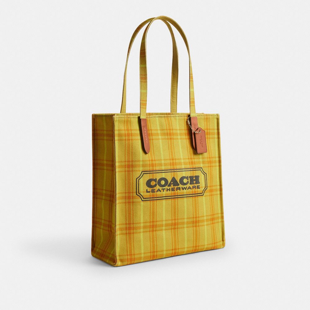 COACH®,キャンバス トート バッグ・プラッド プリント,バーニッシュド アンバー