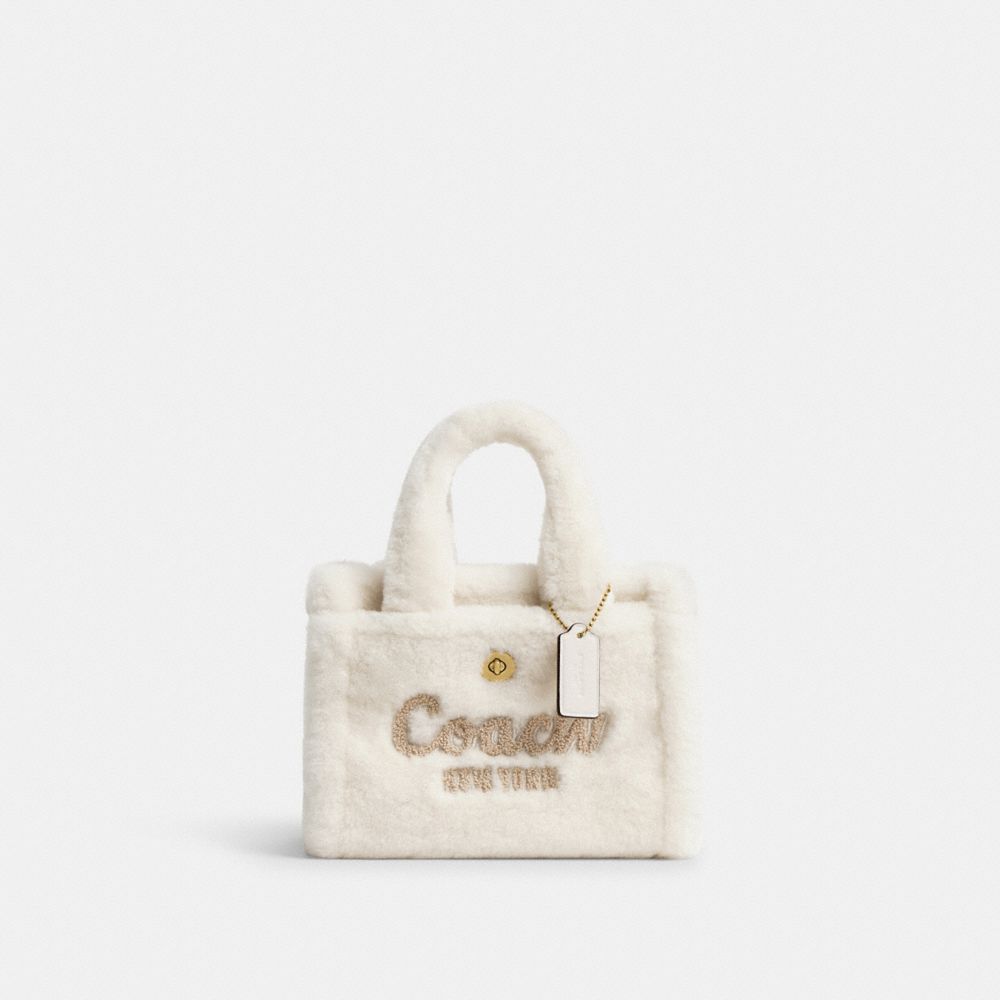必要なものをたくさん(入るだけ)持ち運べる、軽さがうれしいカーゴ トート。コーチの筆記体のロゴ刺繍とアイコニックなターンロックが目を引きます。愛らしい“ふわもこ”な手触りと温かみのあるカラーリングが魅力のシアリングで作り上げました。
