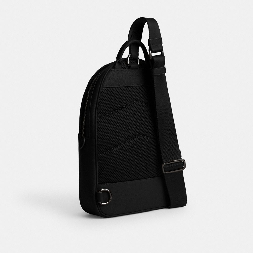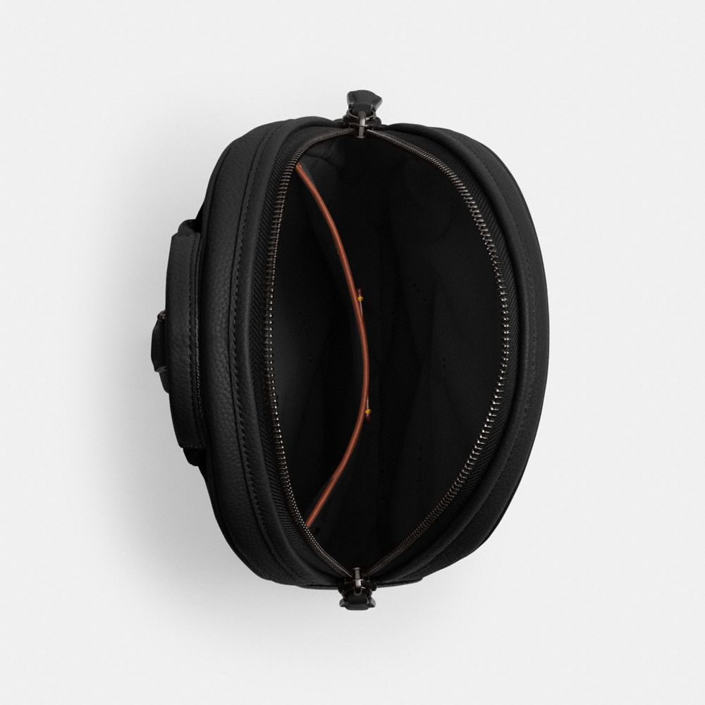 バックパックに代わるスリムな流線型のパックは、長財布やiPadが収まるサイズ感のスポーティなハンズフリー スタイル。内・外側のポケットに小物をすっきり収納。背面には通気性の高いメッシュ素材を採用しました。ポリッシュド ペブル レザーに、デボス加工を施して立体的にあしらったコーチのロゴが目を引きます。付属の長さ調整ストラップをバッグ上部から右下または左下に付けて、肩掛けや斜め掛けでもお使いいただけます。