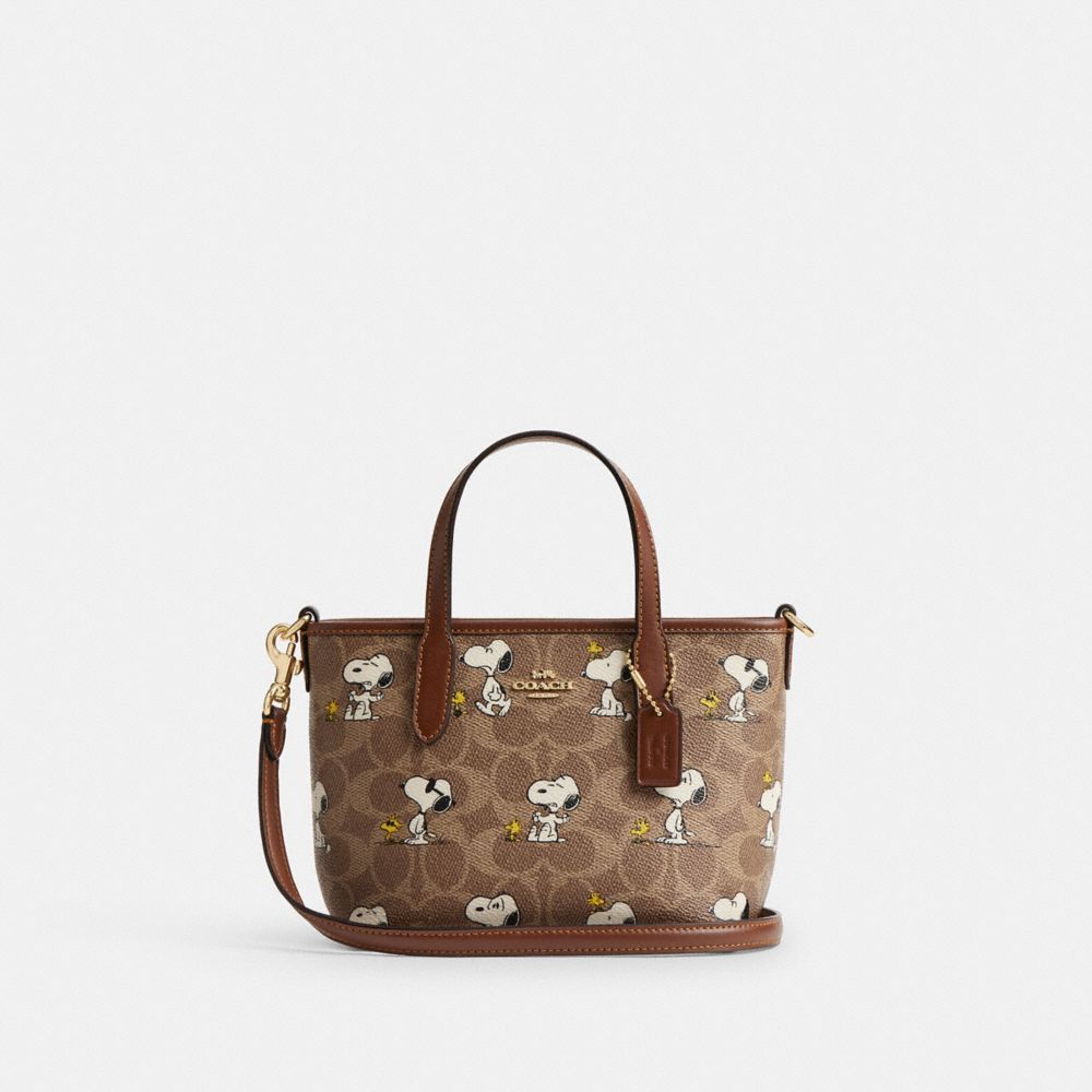 COACH®,【COACH X PEANUTS】シティ ミニ トート バッグ・シグネチャー キャンバス・スヌーピー プリント,ミニバッグ&お財布ショルダー,タン/ブラウン マルチ
