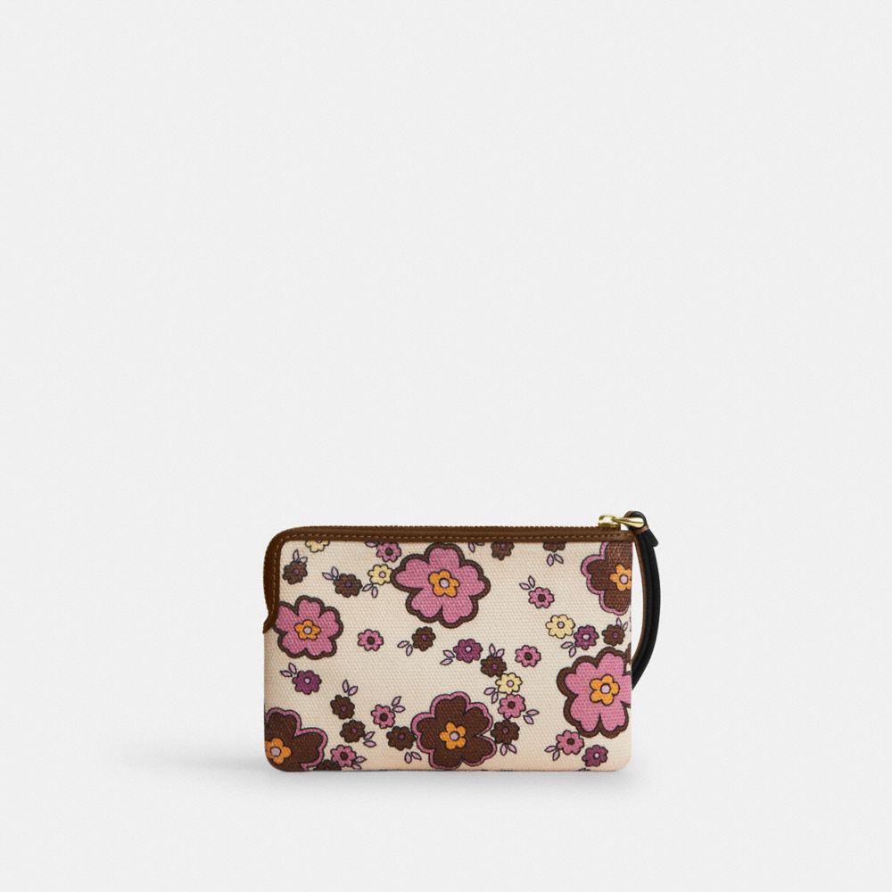 COACH®,コーナー ジップ リストレット・フローラル プリント,チェスナット トロピカル フローラル