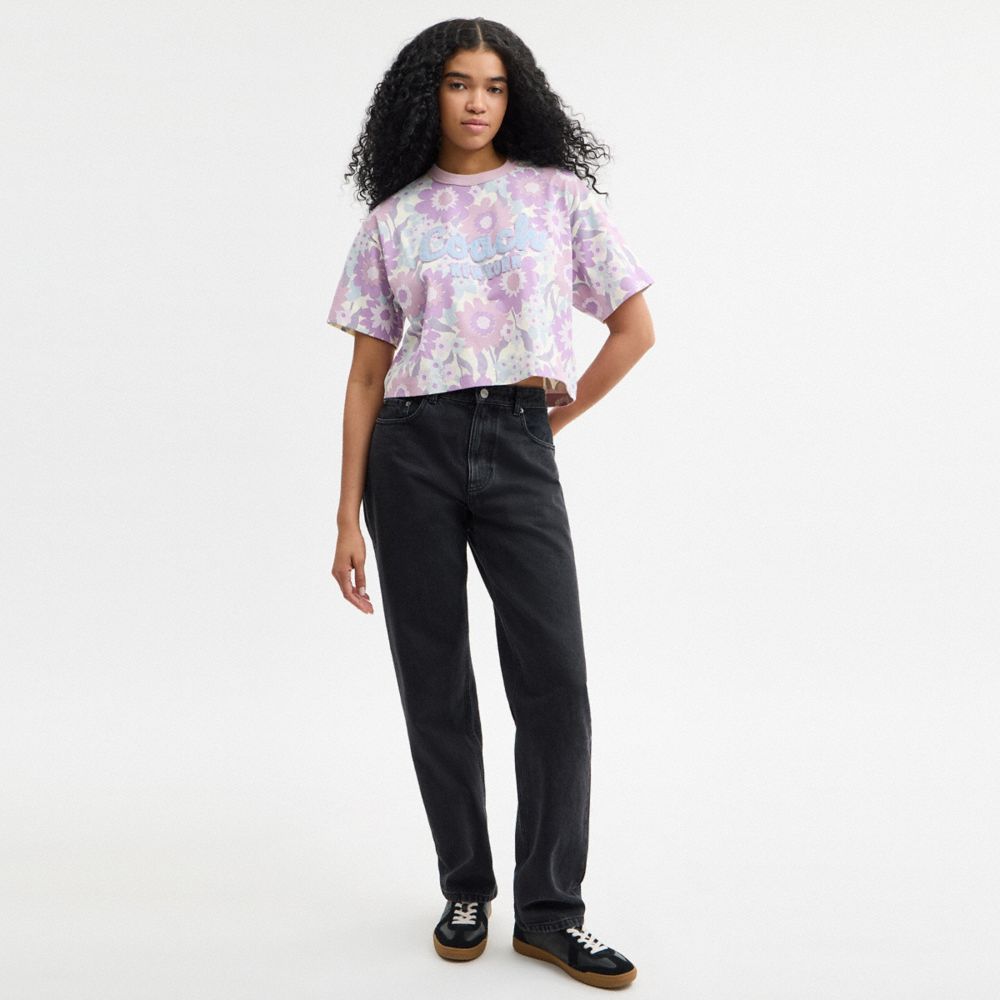 コーチの筆記体のロゴが目を引く、クロップド丈のTシャツ。陽射しを浴びて色が和らいだ1960年代のサマーモチーフを思わせる鮮やかなフローラルプリントが魅力です。有害な化学肥料や農薬を使用しないオーガニック コットンで仕立てた、着心地のよいドロップショルダーのボクシーシルエットのTシャツです。