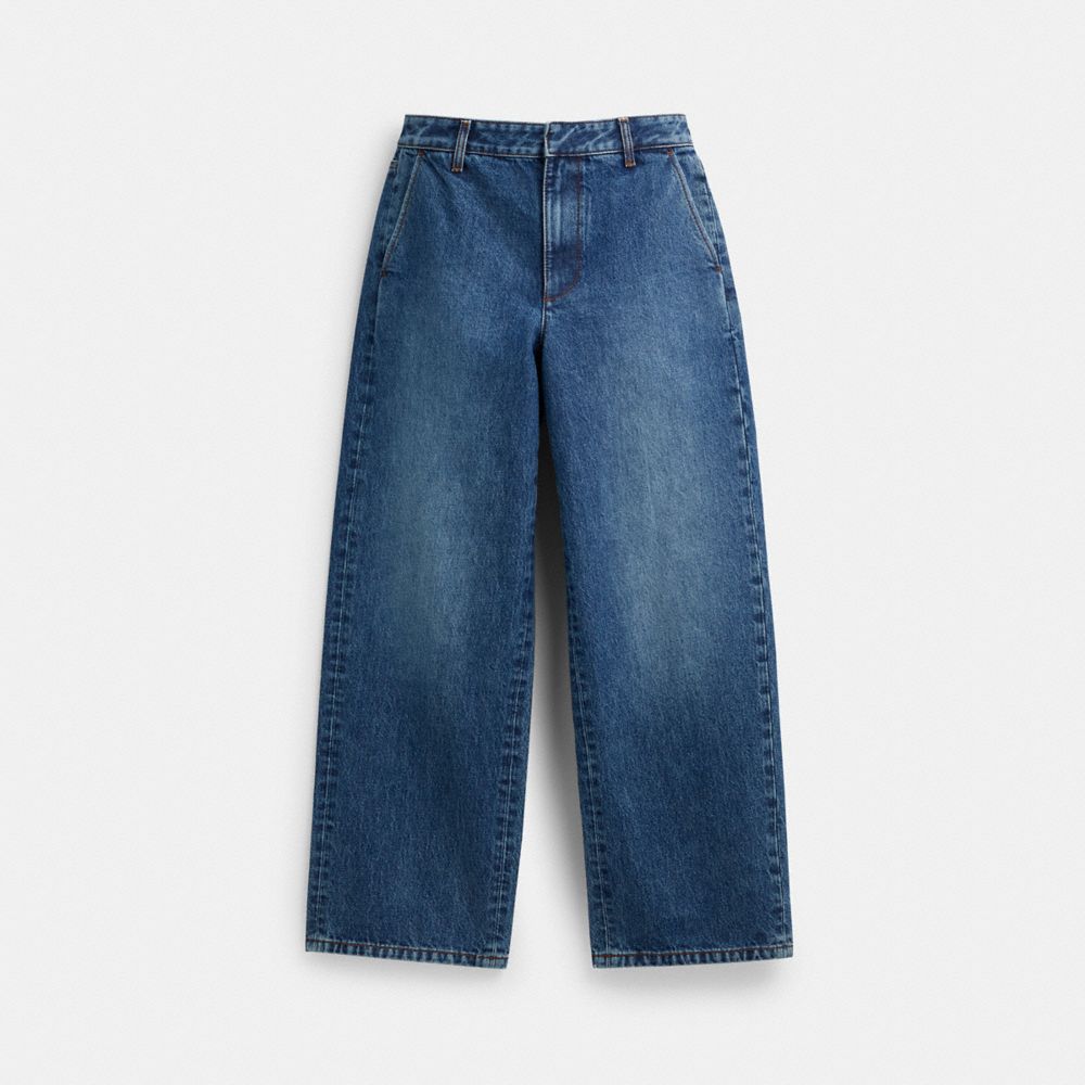 ストレートレッグのスタイルに、スリップポケットとウェルトポケット付き。コーチのレザーパッチがクラシックな雰囲気を添えます。