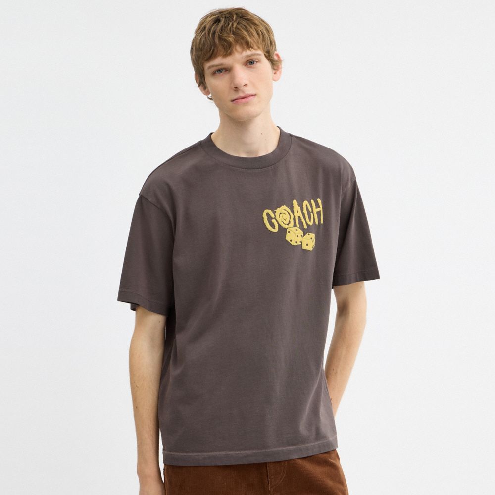 COACH®,ダイス リラックスド Tシャツ,トップス&Tシャツ,ガーメント ダイ ブラック