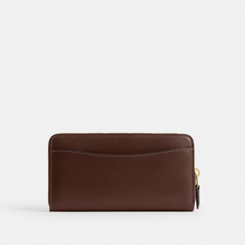 リファインド カーフ レザーにコーチの“C”のハードウェアをあしらった長財布。開くとゆとりあるインテリアが広がるジップアラウンド開閉式です。