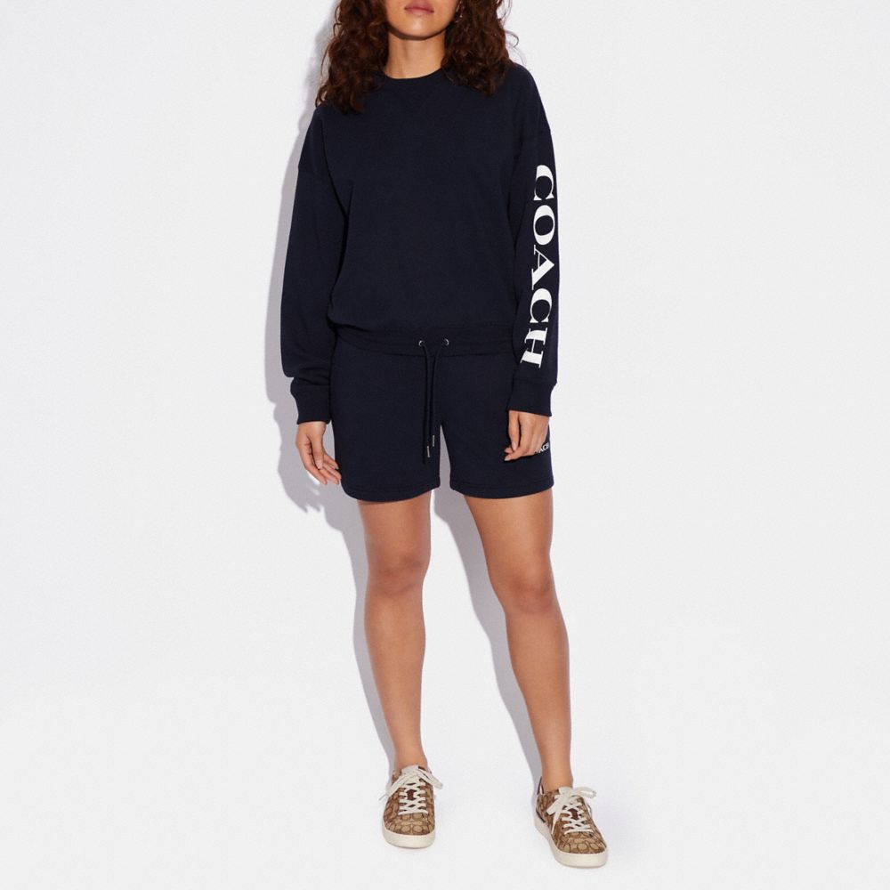 左腕にコーチ ロゴが入ったスウェットシャツ。お揃いのエッセンシャル スポーティ スウェットショーツと合わせれば、セットアップとしてもお楽しみいただけます。