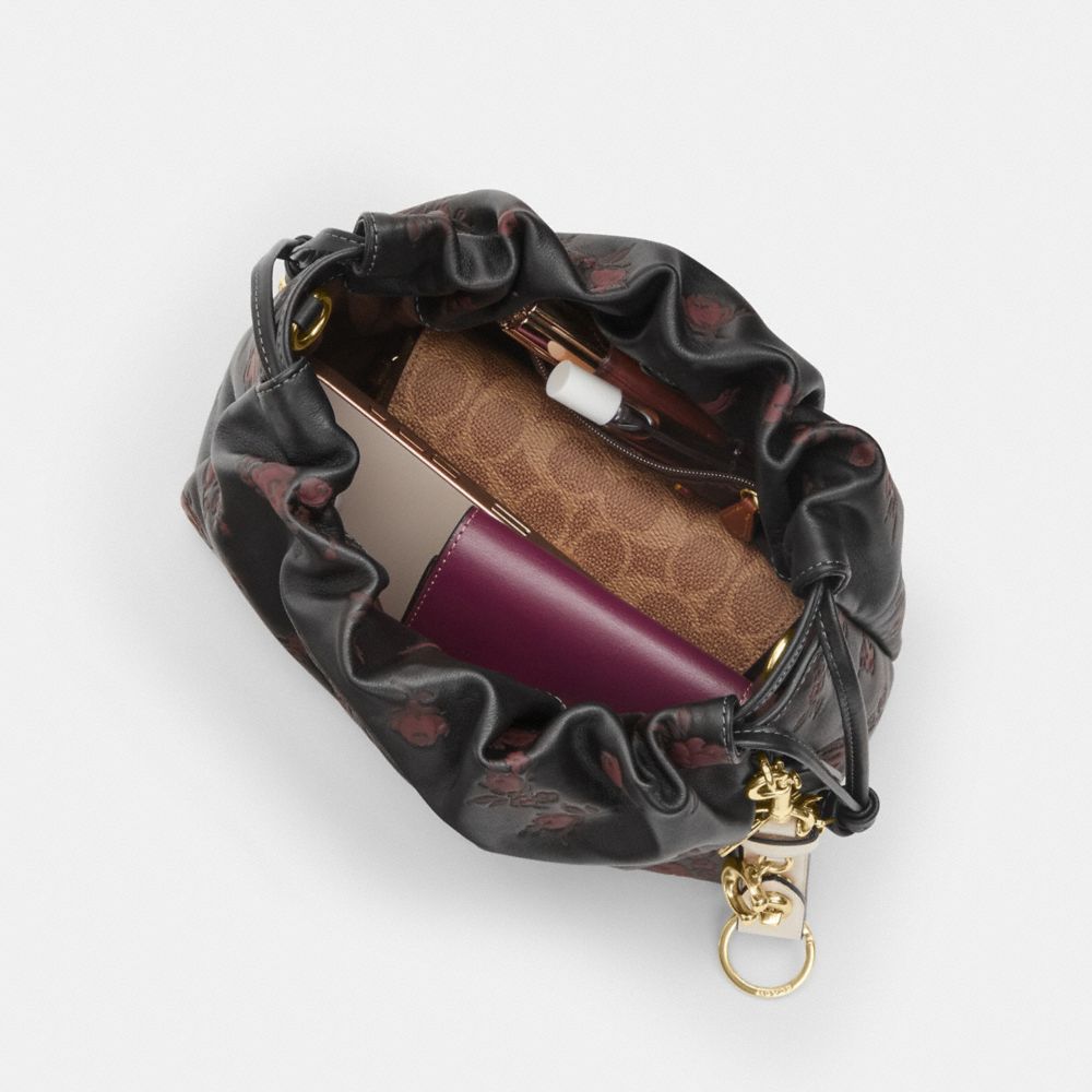 COACH®,フェイ ドローストリング バッグ・フローラル プリント,斜め掛け&ボディバッグ,ブラック/ワイン マルチ