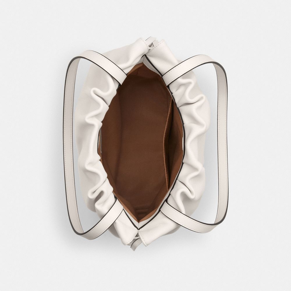 ギャザーのふんわり感と巾着型のシルエットがよく馴染み、ジェンダーや世代を問わず使えるデザイン。最大11インチiPad Proや長財布、折りたたみ傘や500mlペットボトルまで入るサイズ感で、通勤・通学にもぴったり。ロゴとチャームが上品なアクセントを添えます。