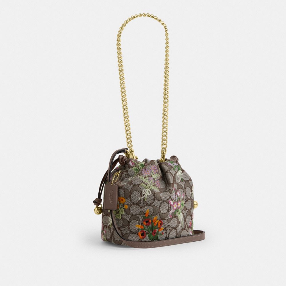 COACH®,フェイ ミニ ドローストリング バッグ・シグネチャー ジャカード・フローラル エンブロイダリー,ミニバッグ&クラッチバッグ,オークマルチ