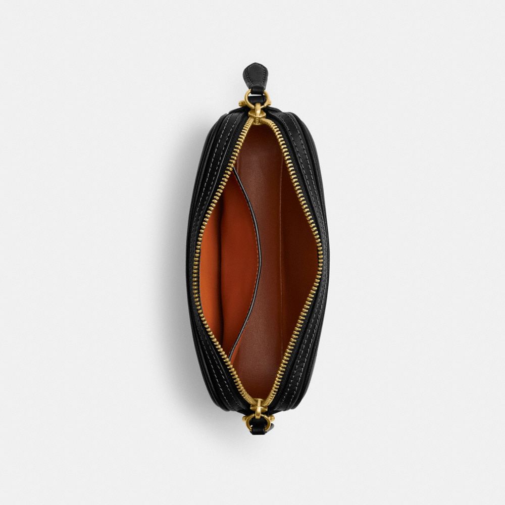 仕切りのない内側は大きめのスマートフォンが入るサイズ感。ジップが両側まで大きく開く出し入れしやすいスタイルに、コーチのアイコニックなホース アンド キャリッジのハードウェアがアクセントを添えます。付属のハンドルとストラップを使い分けて、手持ちはもちろん、肩掛けや斜め掛けでもお使いいただけます。(お出かけを楽しみましょう)