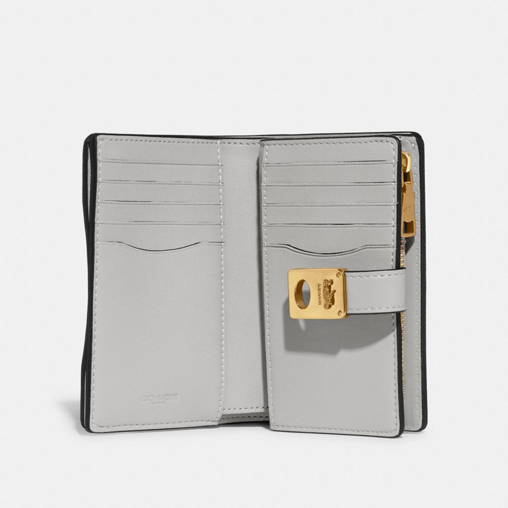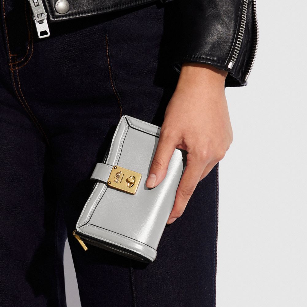 タイムレスが魅力のハットン。光沢のあるハードウェアをあしらった現代のアイコンとして、コーチらしいターンロック開閉も新鮮に映るデザインです。リファインド カーフ レザーを使用したデザインには、10個のカードスロットのほか、内側にお札やレシートまたはチケットなどを入れられるオープンポケットやジップ付き小銭入れが、また外側にはICカードなど頻繁に使うものを出し入れしやすい便利なスリップポケットが付いています。