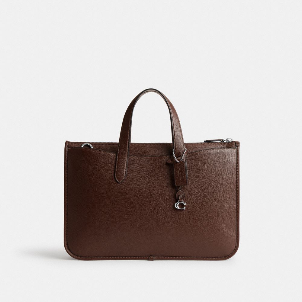 通勤・通学に欠かせないアイザック。ポリッシュド ペブル レザーで仕立てた、スタイリッシュで機能的なトップハンドルのキャリーオールです。