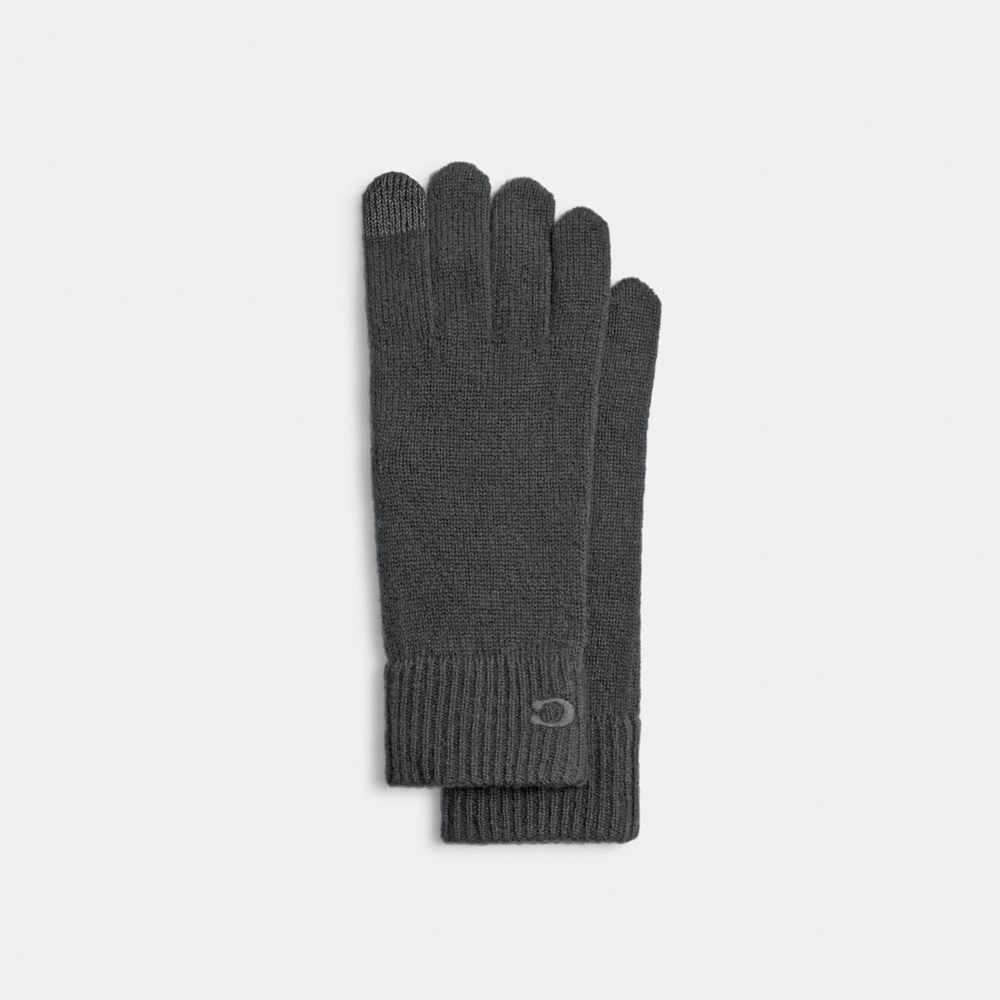 贅沢なほど柔らかいカシミヤ混ウールで編んだニットグローブ。手首部分にコーチの“C”の刺繍を施しました。