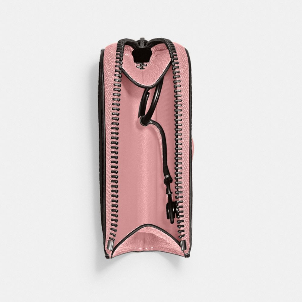 L字型に大きく開くジップ キーケース。最大マチ幅5cmの内側にスマートキーも無理なく入るサイズ感。外側にはICカードなどに便利なスリットポケット付き。