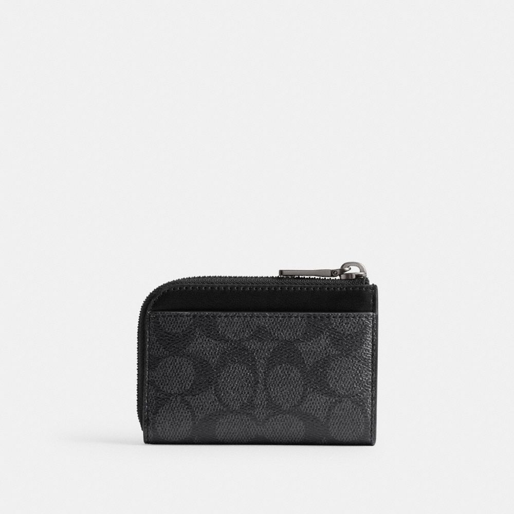 L字型に大きく開いて使いやすいジップ キーケース。L字部分の丸みが衣類ポケットに心地よくフィットする、リファインド レザーとシグネチャー キャンバスで作り上げたコンパクトなデザインです。