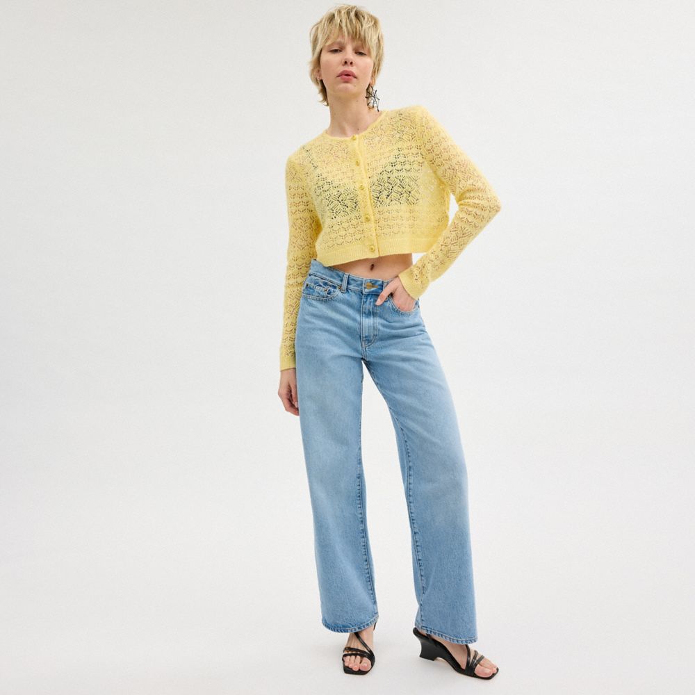 COACH®,レース ニット カーディガン,トップス&Tシャツ,イエロー