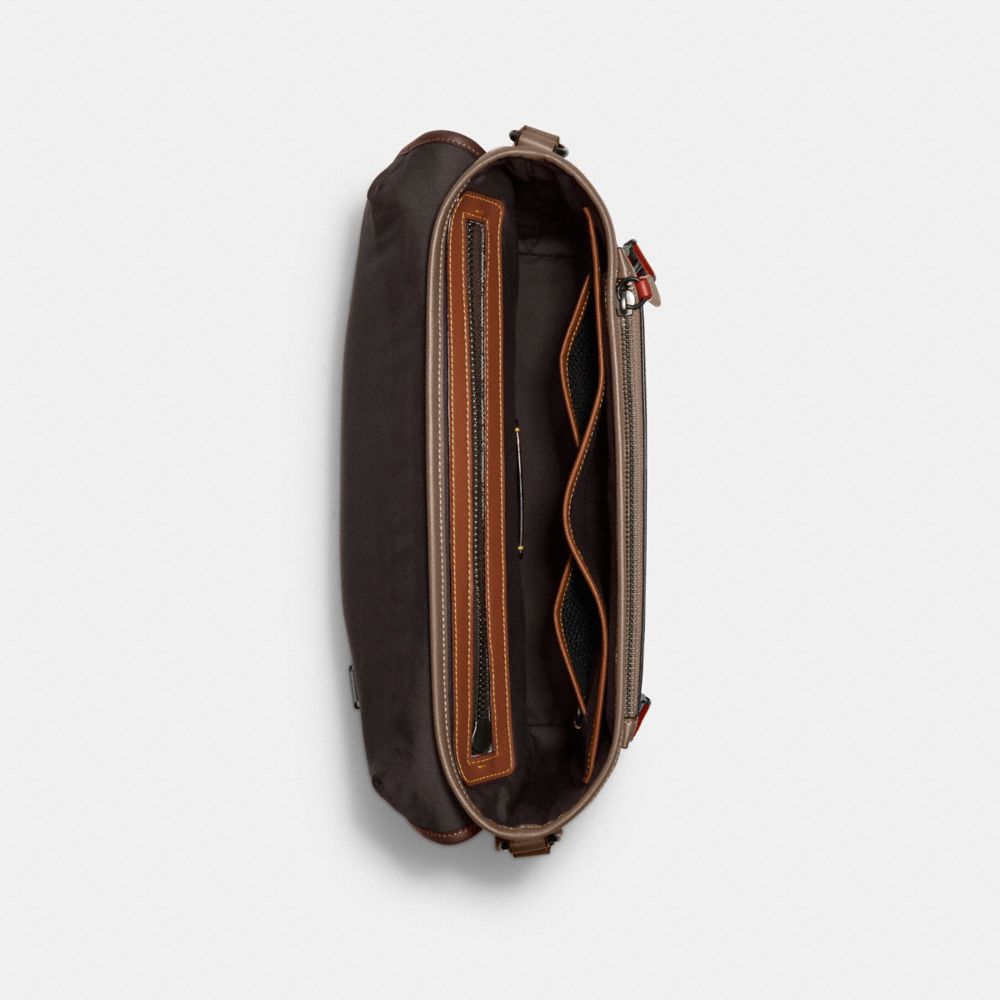 忙しく慌ただしい日常を支えるリーグ。シグネチャー ジャカードとリファインド カーフ レザーにコーチ グラフィックをデボス加工した、高機能なデザイン。通勤、通学シーンに活躍するA4サイズや13インチ ノートパソコンまで収納可能で、背面には外側から中身をさっと取り出せるジップ開閉口付き。レザー トップ ハンドルを持っても、長さ調整可能ストラップでショルダー&斜め掛けにしてもお使いいただけます。