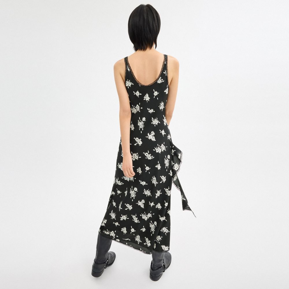 華やかに咲き誇るデイジーのモチーフがロマンチックな軽やかさを添える、シルクのマキシドレス。ロング丈のシルエットにカスケードラッフルとレースのトリミングを施し、スポーティなスクープネックで仕上げました。取り外し可能なインナードレス付き。