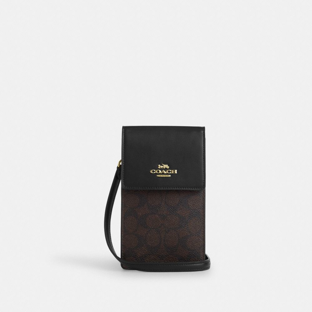 COACH®,フォーン クロスボディ・シグネチャー キャンバス,ミニバッグ&お財布ショルダー,ウォルナット/ブラック