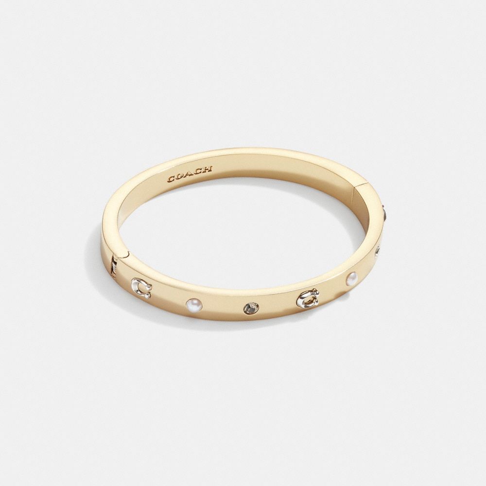 COACH®,ペグド シグネチャー アンド ストーン ヒンジド バングル,ブレスレット&バングル,ゴールド/ブラック ダイアモンド