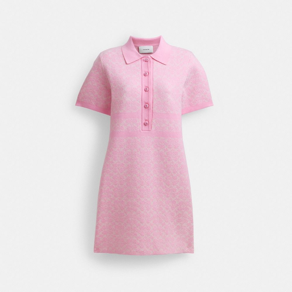 定番スタイルにコーチのシグネチャー パターンを添える、コットン混のAライン ニットドレス。クラシックなポロスタイルを爽やかにアレンジしたフィット感のあるシルエットに、ポインテッドカラーとリブトリムをあしらいました。コーチの“C”のボタンがアクセントを添えます。