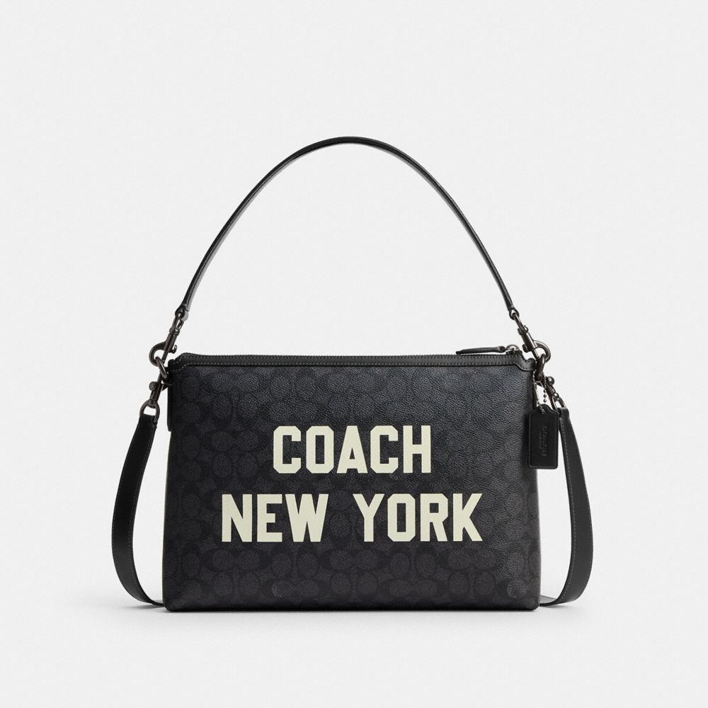 様々なシーンで活躍する“Relay(リレー)”トート シリーズ。シグネチャー コーテッド キャンバスとリファインド カーフ レザーにあしらわれた“COACH NEW YORK”のグラフィックが、ミニマルなデザインに映えます。