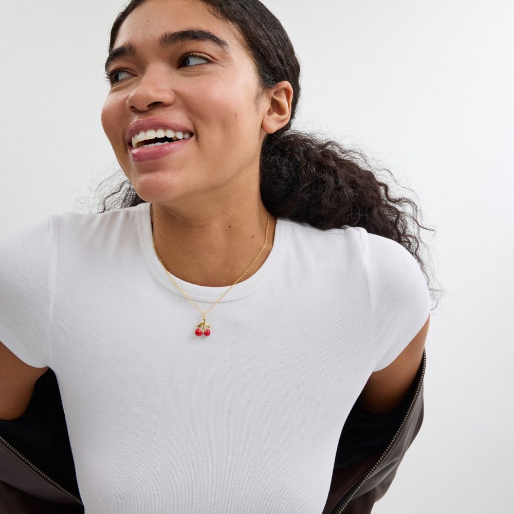 COACH®,レジン チェリー ペンダント ネックレス,ネックレス,ゴールド/レッド