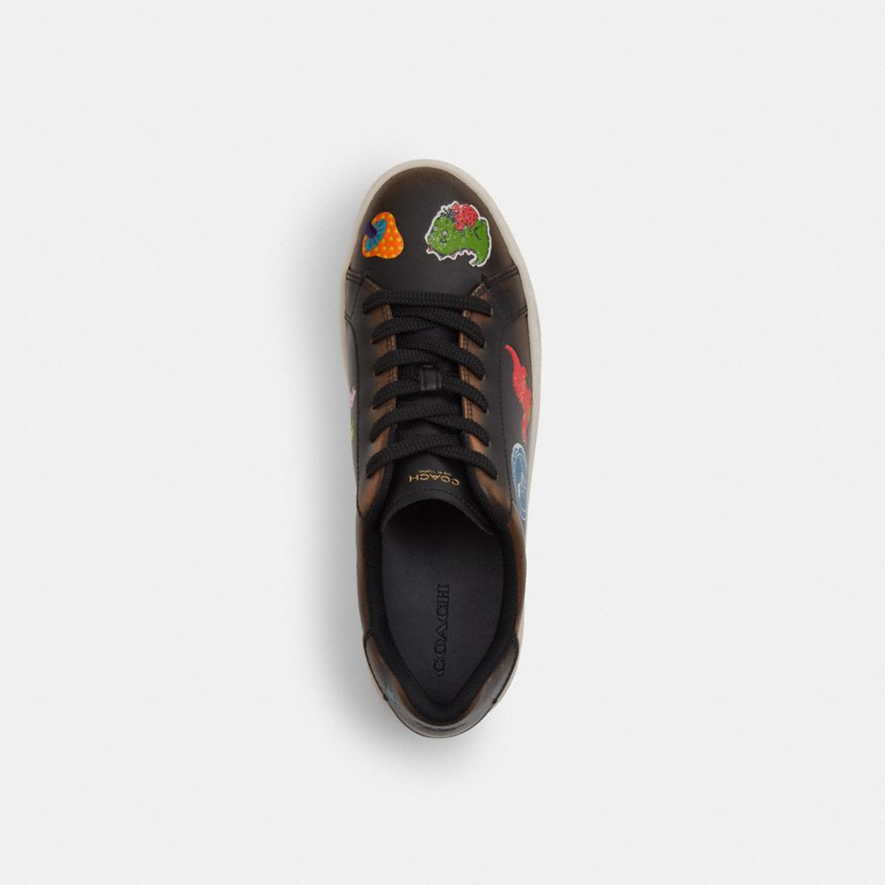 レキシー 10TH バースデー ハイ ライン スニーカー・ステッカー プリントは、コーチのアイコン キャラクターの恐竜<レキシー>の10歳の誕生日を祝した、特別なカプセルコレクションのスニーカーです。