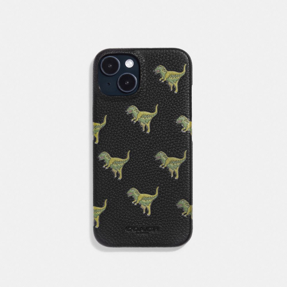 立体的なコーチのアイコン キャラクターの恐竜<レキシー>が遊び心を添える、リュクス レザーで仕上げたスマートフォン ケース。ご自分用にはもちろん、ギフトにもおすすめです。