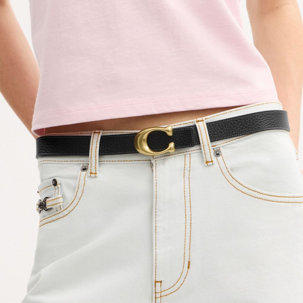COACH®,スカルプテッド C バックル リバーシブル ベルト・25MM,ファッション雑貨,ブラス/ブラック レッドウッド