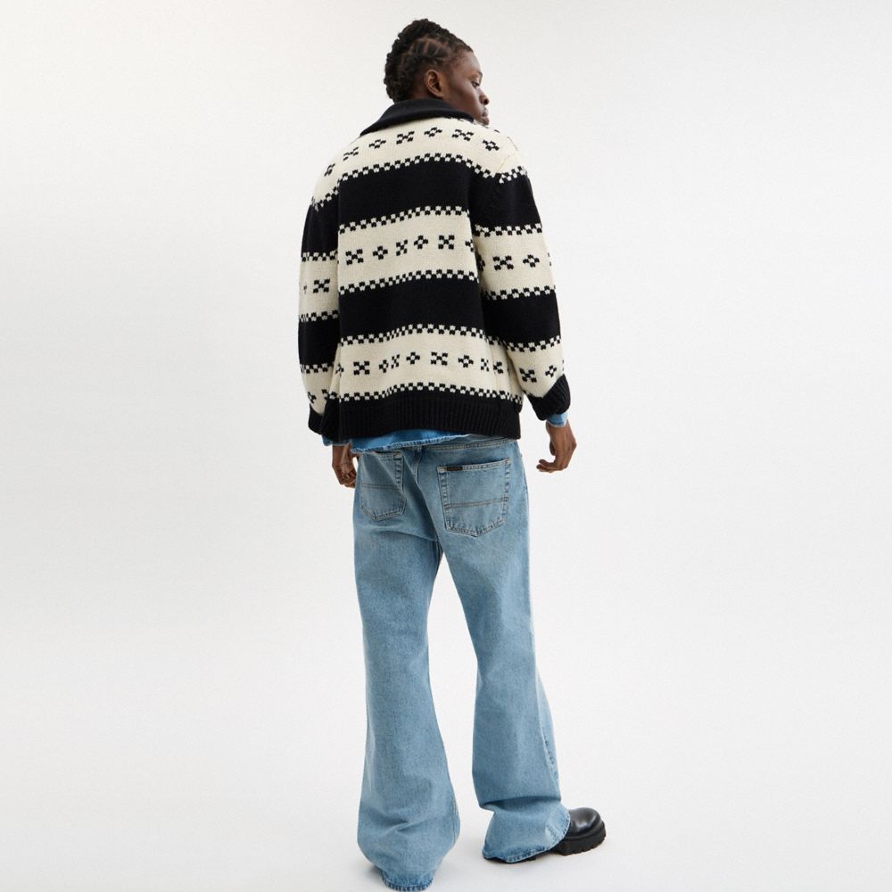 肌寒い日のレイヤードアイテムとして活躍してくれる、リラックスフィットのウール カーディガン。ショールカラーのシルエットにスリップ ポケットをあしらいました。クラシックなフェアアイル柄のデザインに、コーチのロゴ刺繍がさりげなくクラシックな雰囲気を添えます。
