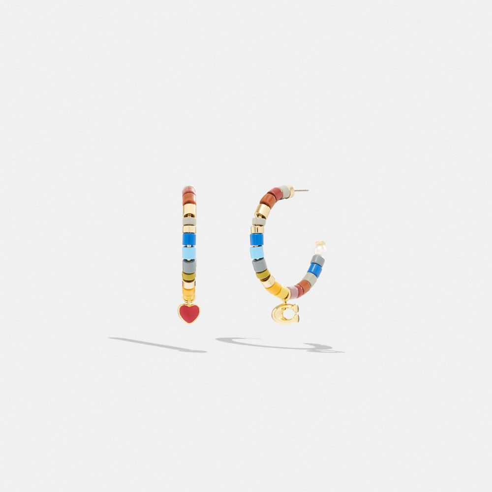 COACH®,シグネチャー アンド ハート レインボー ビーズ フープ ピアス,ピアス,
