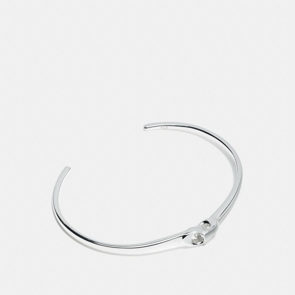 スターリング シルバーを使ったスレンダーなカフ。コーチ アイコンのモチーフの抽象的なテイストが特徴です。単体でも、他のブレスレットと重ね付けしてもお楽しみいただけます。