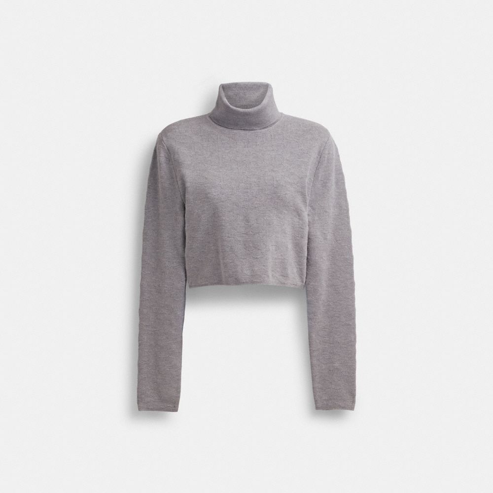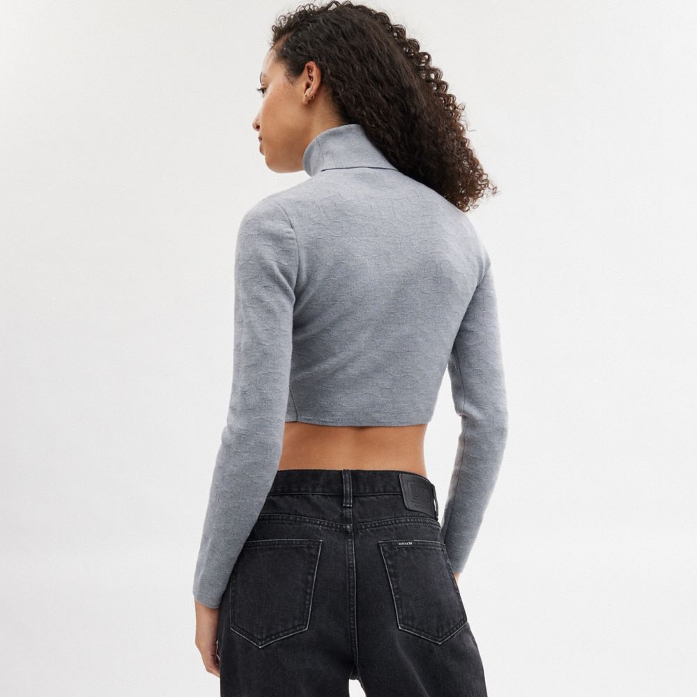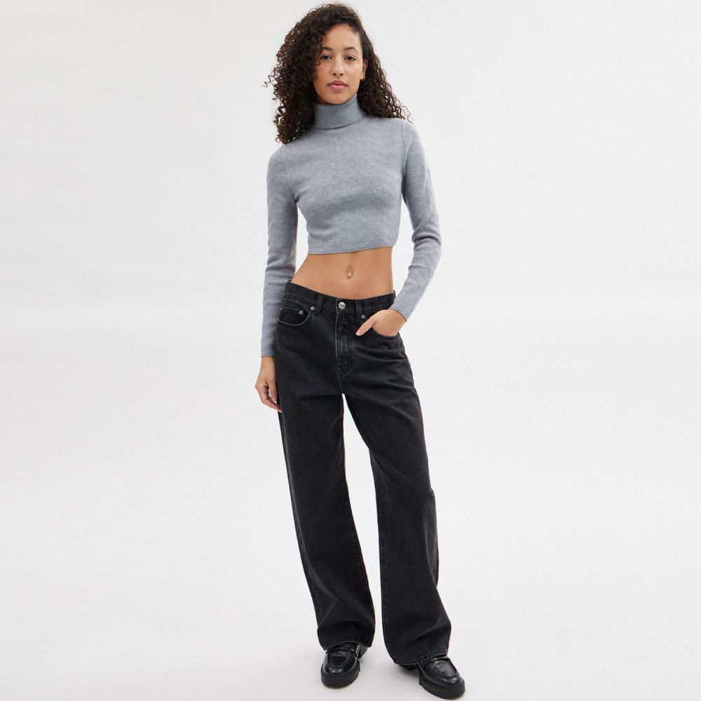 定番スタイルにコーチのシグネチャー パターンを添える、クロップド丈のウール混ニットのセーター。無地のリブ編みタートルネックで仕上げ、クラシックなスタイルを斬新にアレンジしました。