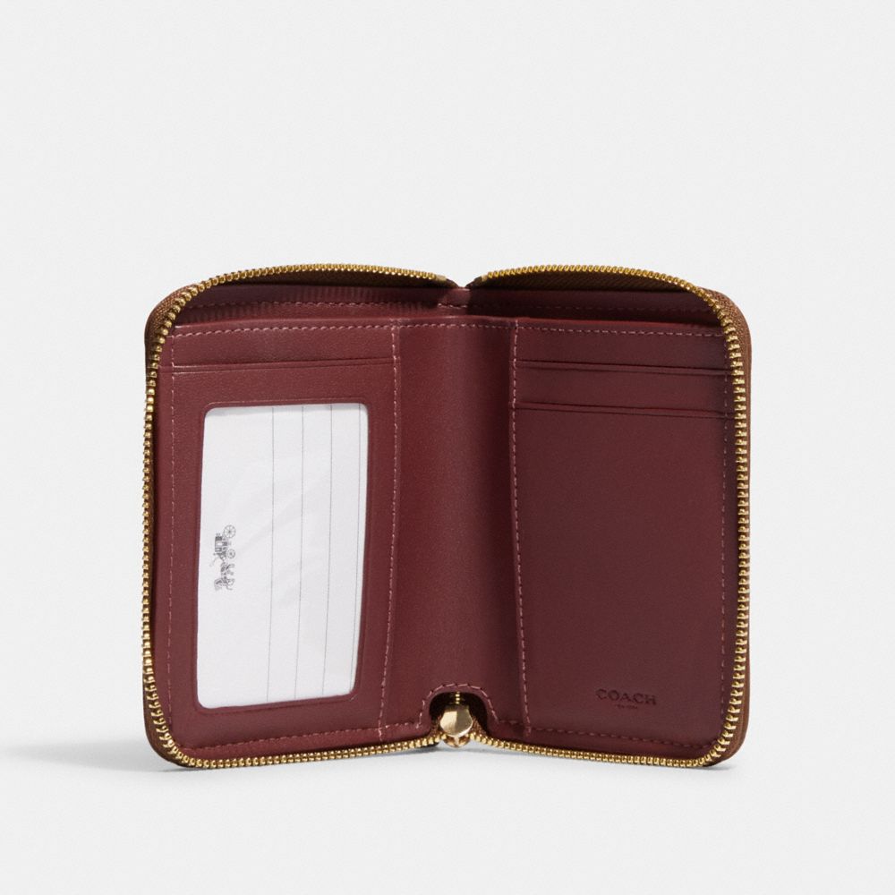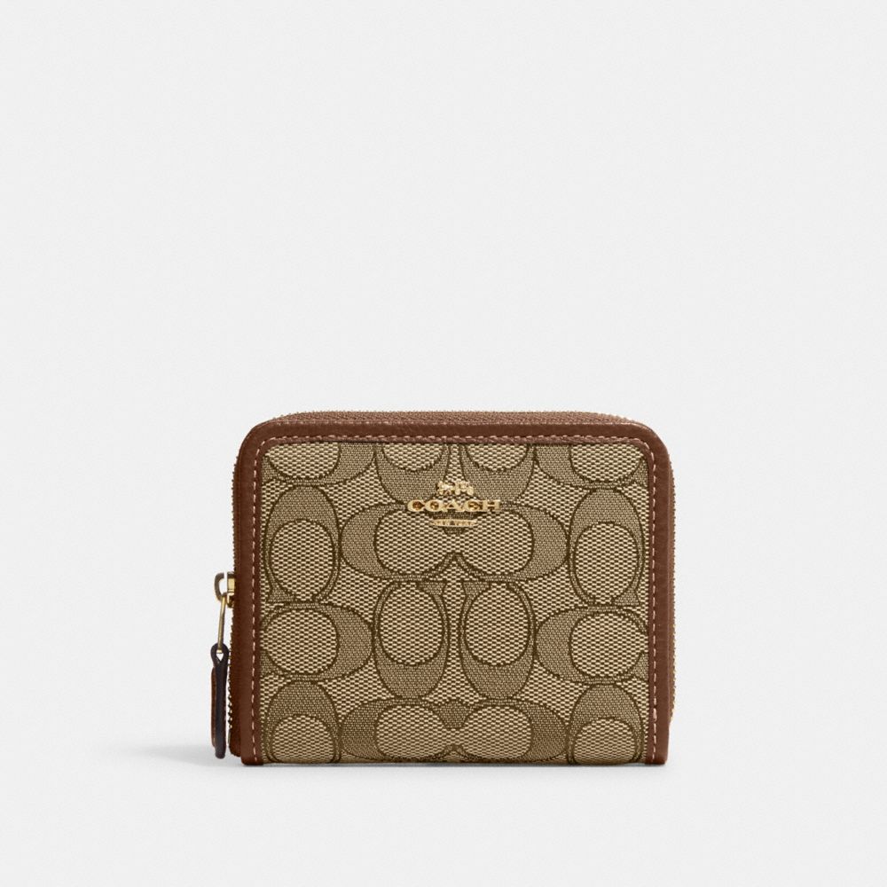 COACH®,スモール ジップ アラウンド ウォレット・シグネチャー ジャカード,ミニ財布,カーキ/サドル マルチ