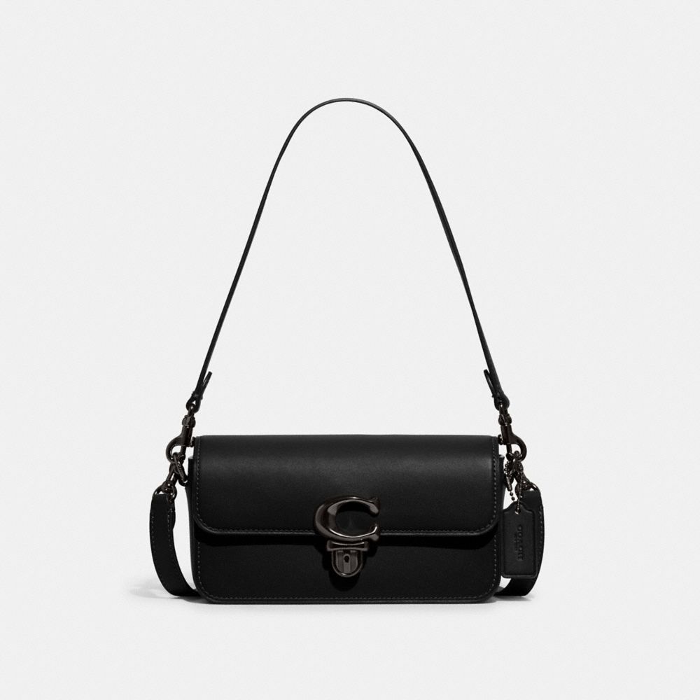 コーチのデザインスタジオ生まれのアーカイブのクラスプをモダンにアレンジした、コーチの“C”ロゴのプッシュロックが目を引くストゥディオ。バターのようにしっとりとしたグラブタン・レザーで作り上げました。