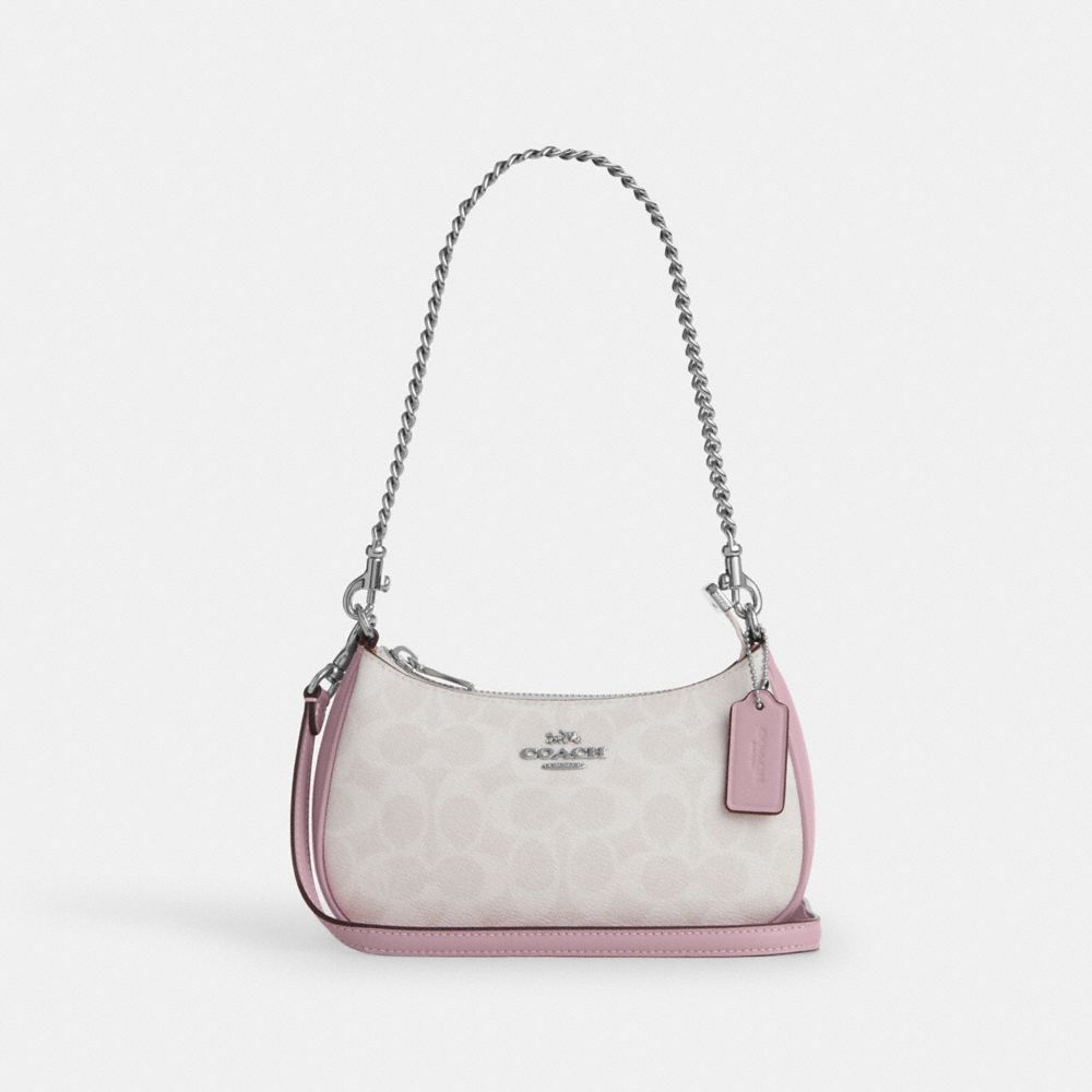 COACH®,テリ ミニ クロスボディ バッグ・シグネチャー キャンバス,ミニバッグ&お財布ショルダー,シルバー/チョーク/カーネーション