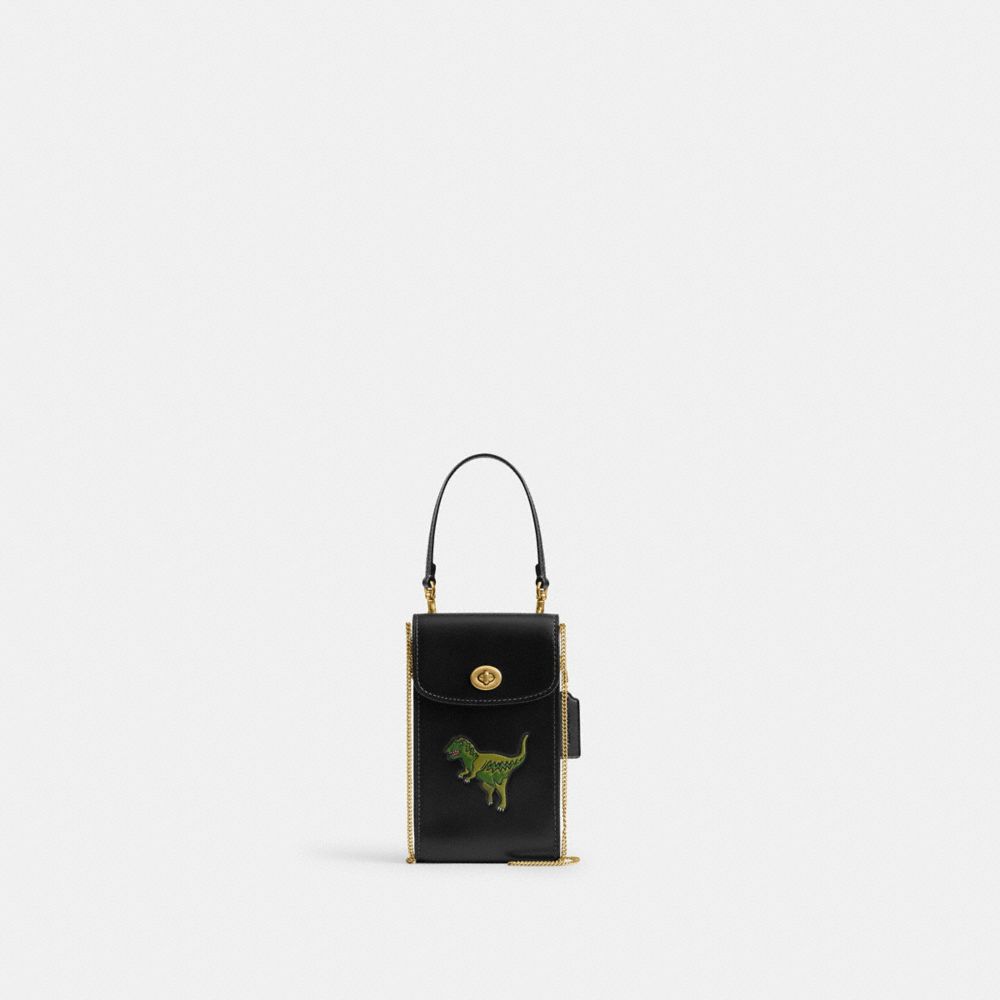アイコニックなターンロックのクロスボディ。スマートフォンなど小物の収納に。リファインド カーフ レザーのデザインに、コーチのアイコン キャラクターの恐竜<レキシー>が気分を盛り上げます。