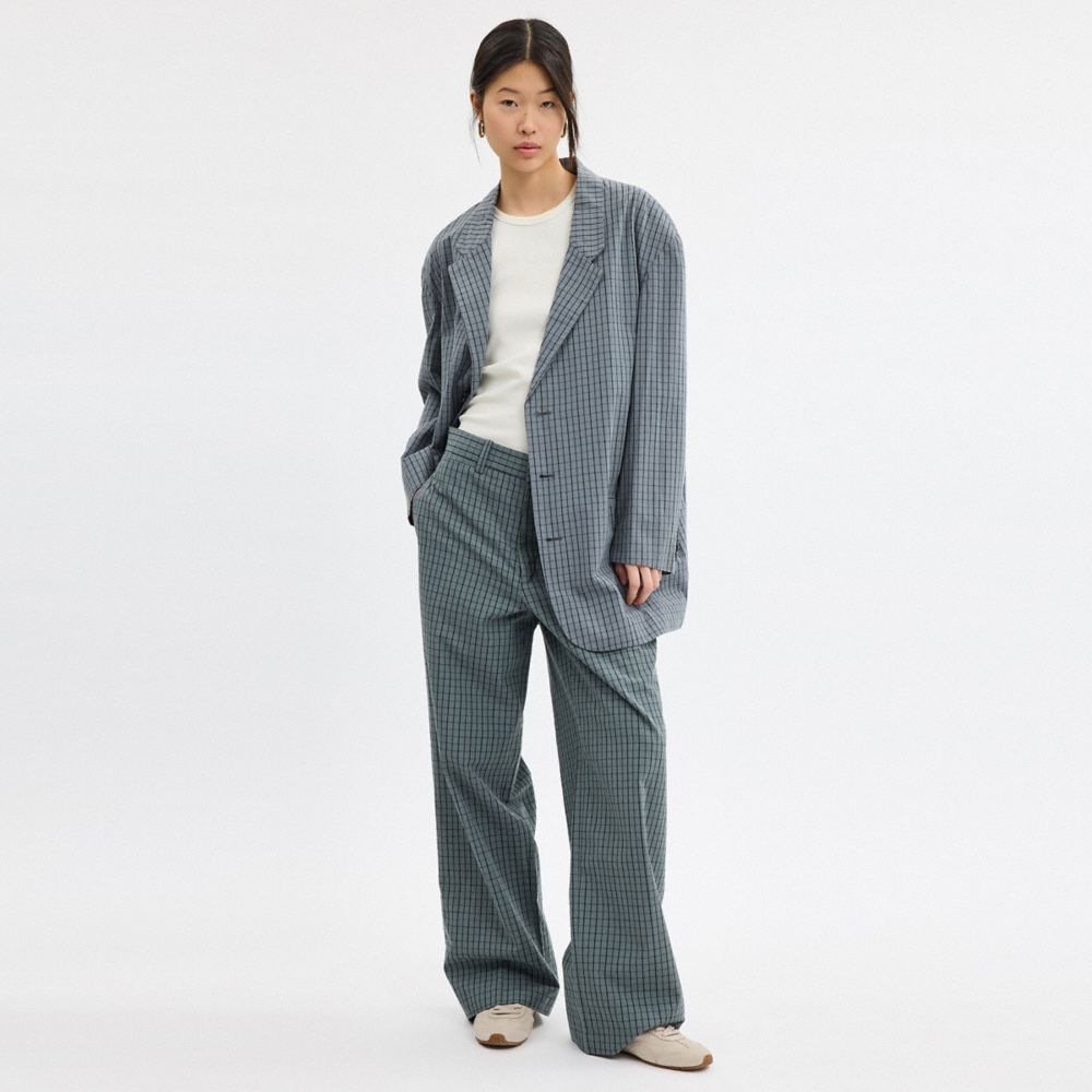 ビジネスにも休日にもぴったりな、チェック柄のコットン素材で仕立てたテーラードパンツ。リラックスフィットのスタイルに、スリップポケットをあしらいました。単体での着用はもちろん、お揃いのブレザーを合わせたコーディネート ルックを楽しんでみても。