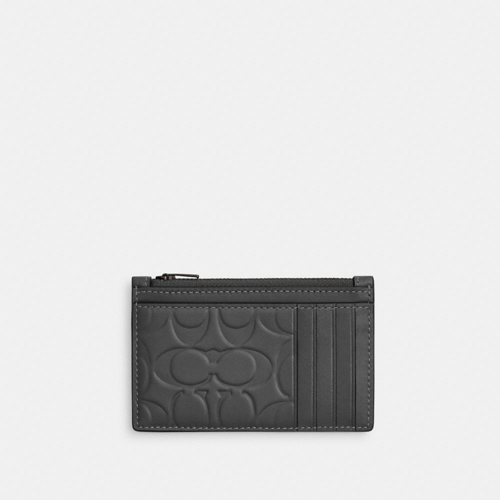COACH®,ジップ カード ケース・シグネチャー レザー,カードケース&パスケース,チャコール